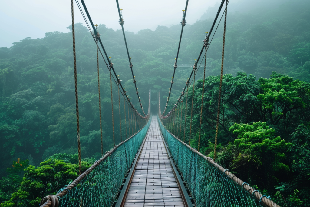 - 桥底仰拍:深入谷底仰视,突出吊桥凌空之势,雨季可拍飞瀑与桥影交错13。